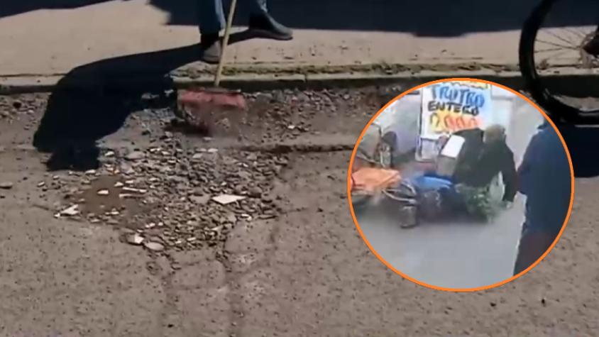 Hay más de 30 hoyos en esa avenida: Adulto mayor se salvó de milagro de ser atropellado por auto que saltó bache