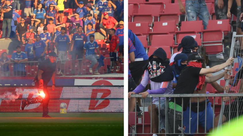 Barristas de la U prenden bengalas e intentan invadir la cancha en partido frente a Audax Italiano