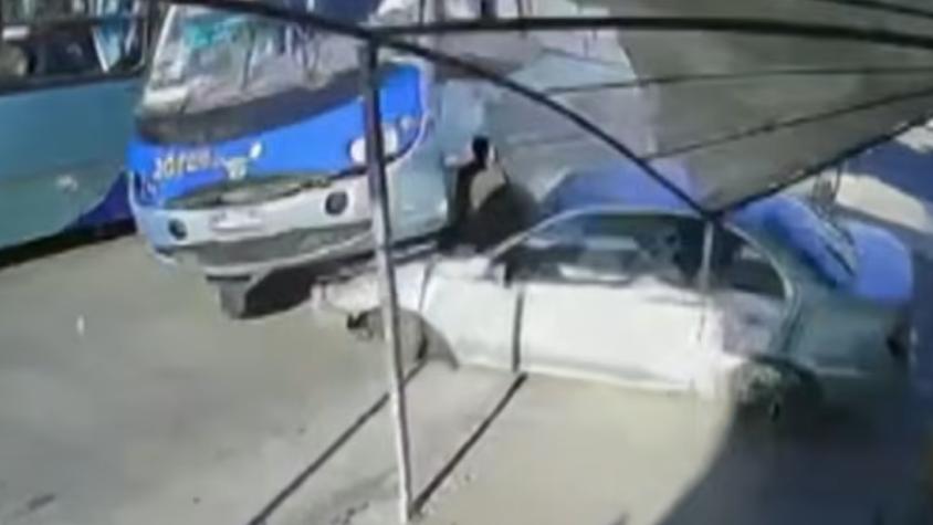 VIDEO | De milagro: Micro aplastó un auto en San Pedro de la Paz y conductor sobrevivió