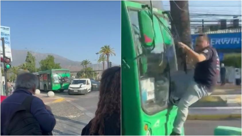 De no creer: Hombre se cuelga de una micro tras choque