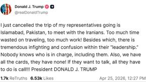 Trump cancela viaje de sus emisarios a conversaciones con Irán en Pakistán
