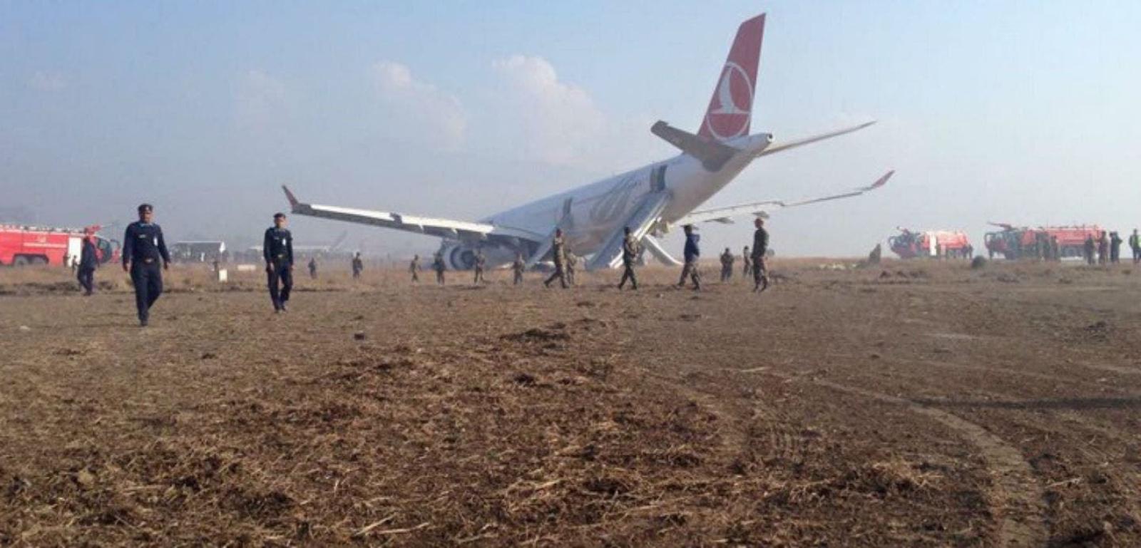 Flightradar confirmó que el vuelo TK726, un Airbus 330, salió de la pista en el Aeropuerto Internacional de Tribhuvan, antes de aterrizar en el lado derecho. Los 240 pasajeros a bordo del avión, que aterrizó la nariz hacia abajo, fueron evacuados y no ha habido informes de daños hasta el momento.