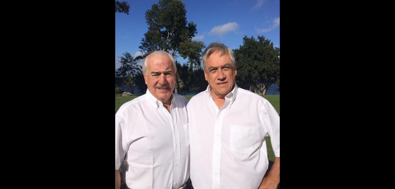 El ex presidente Sebastián Piñera publicó una foto en la que aparece acompañado por el ex mandatario de Colombia Andrés Pastrana, ambos vistiendo una camisa blanca.