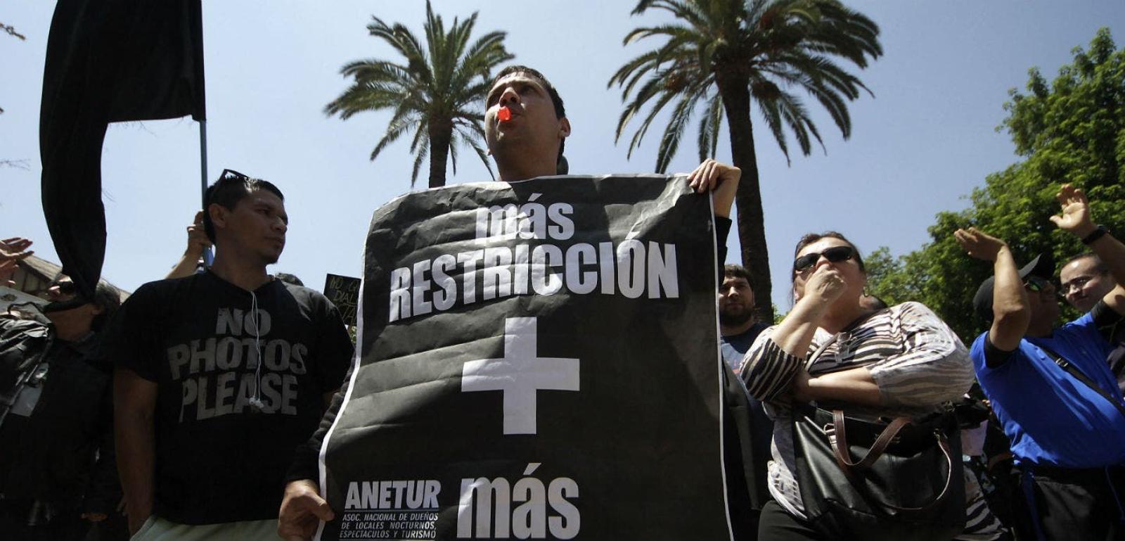 Locatarios de pubs, restaurantes y otras empresas nocturnas manifestaron su malestar frente a la Municipalidad de Providencia por la ordenanza municipal que restringe el horario de venta de alcohol.