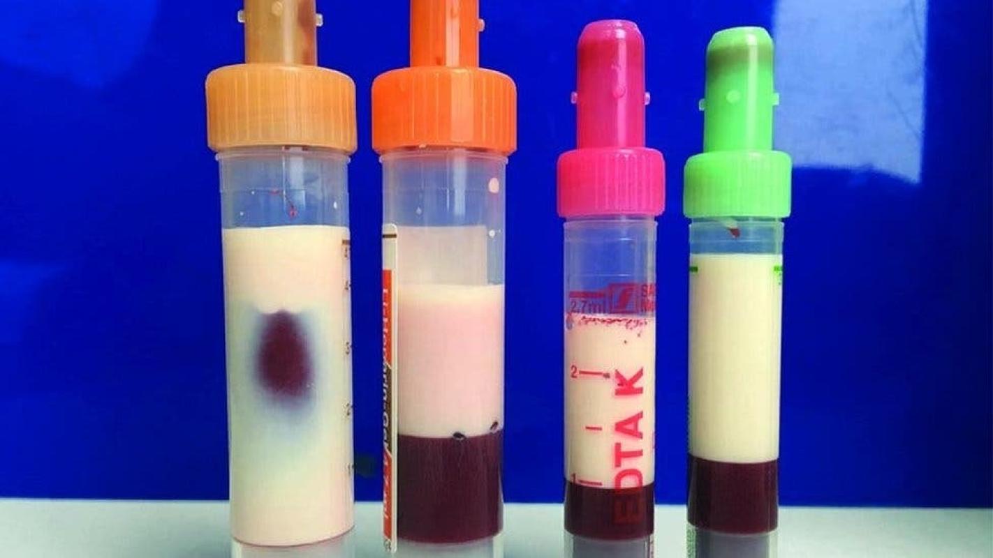 "Después de la sedimentación, una fase blanca se separó de la sangre saludable, que quedó en la parte inferior (del recipiente)".