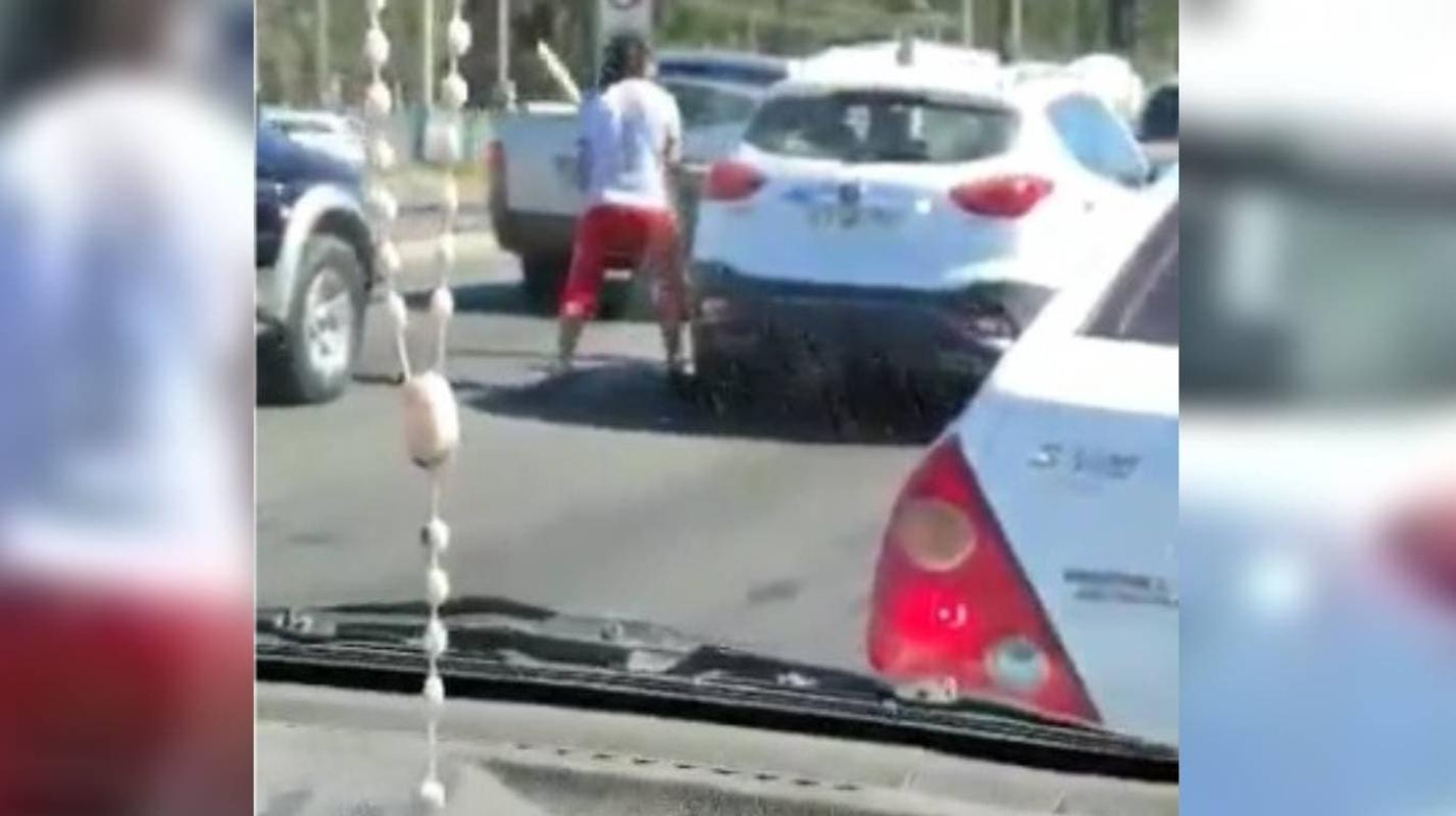 El hecho fue grabado por otro automovilista, quien logró registrar cuando un sujeto golpea un auto con un bate. Luego, a la agresión, se suma una mujer quien —aparentemente— acompañaba al hombre que portaba el bate.