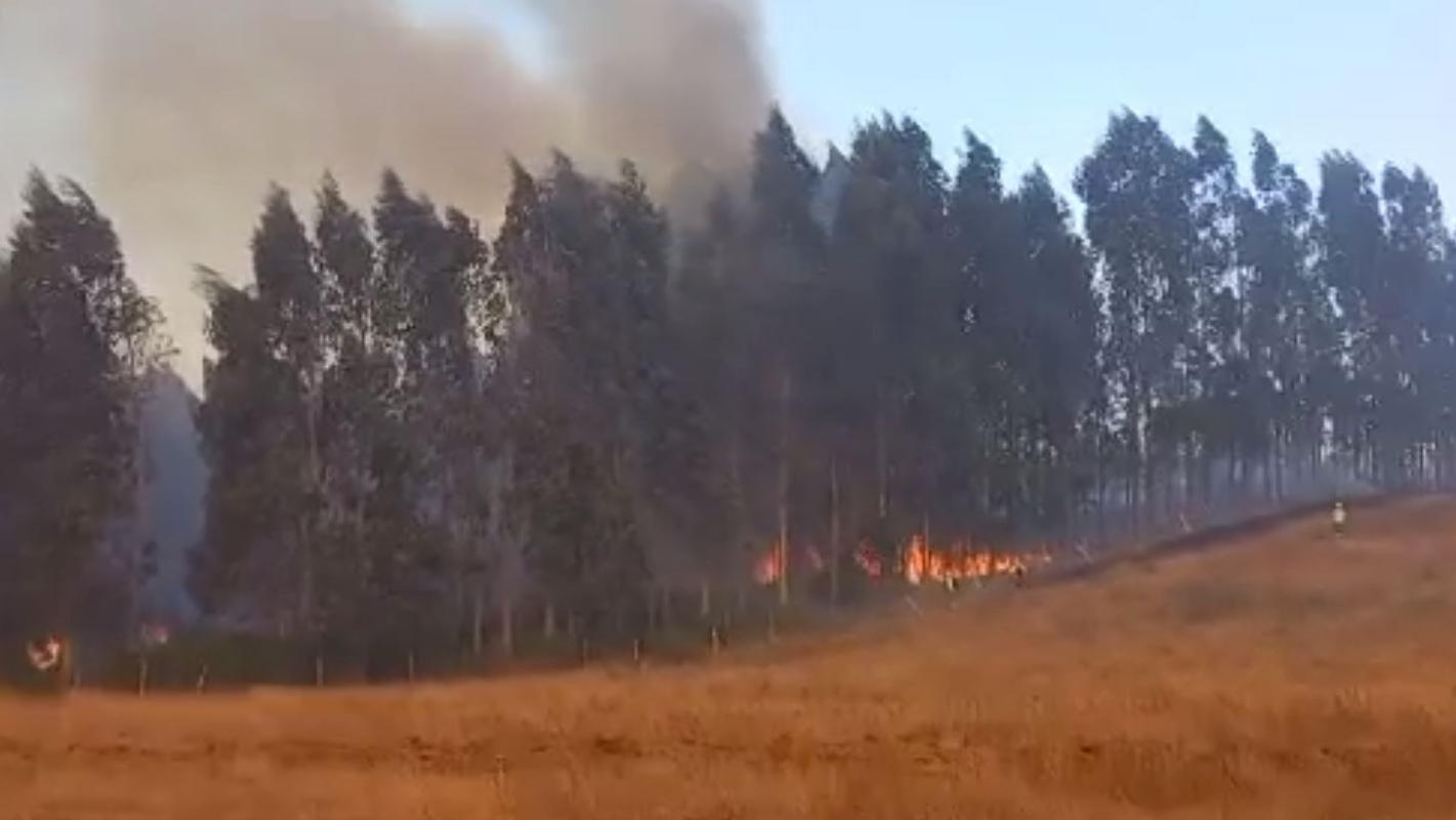 Un incendio forestal se registra este sábado en la comuna de Tirúa, en la región del Biobío.