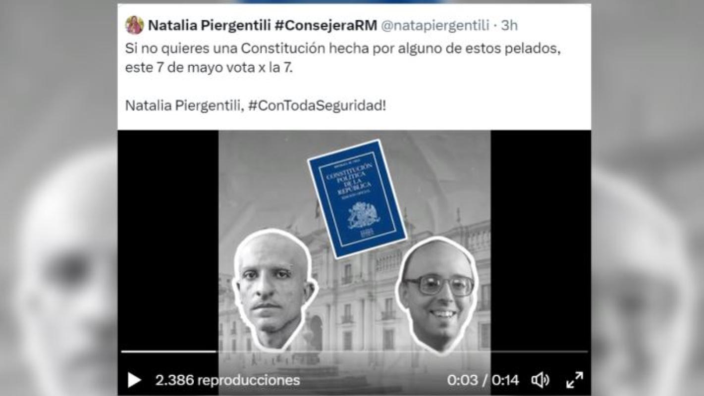 “Si no quieres una constitución hecha por algunos de estos pelados este próximo 7 de mayo vota por el 7, Natalia Piergentili”.
