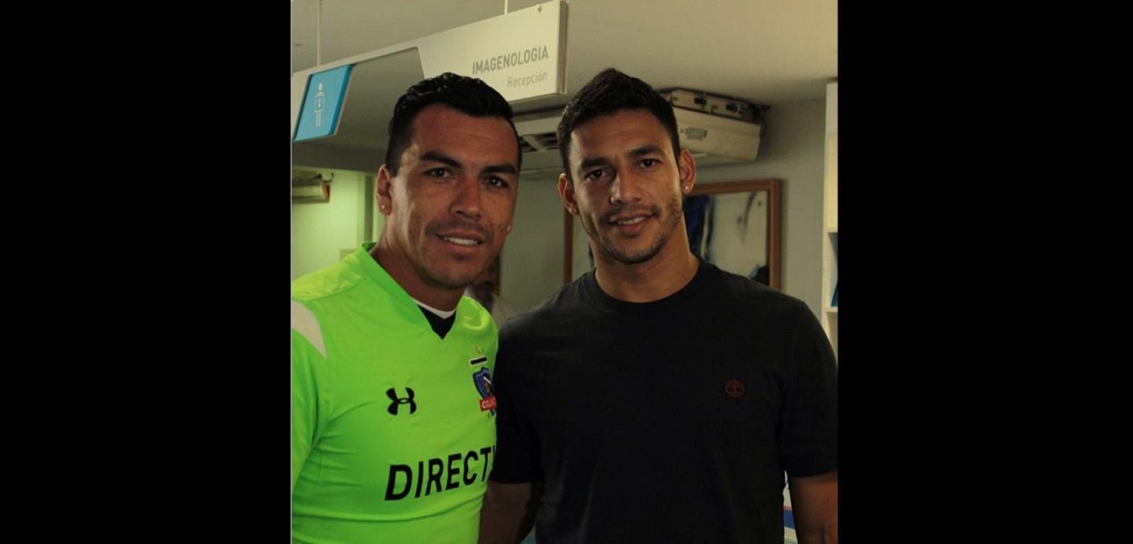 Esteban Paredes dándole la bienvenida al nuevo refuerzo de #ColoColo José Leonardo Cáceres en #MEDS