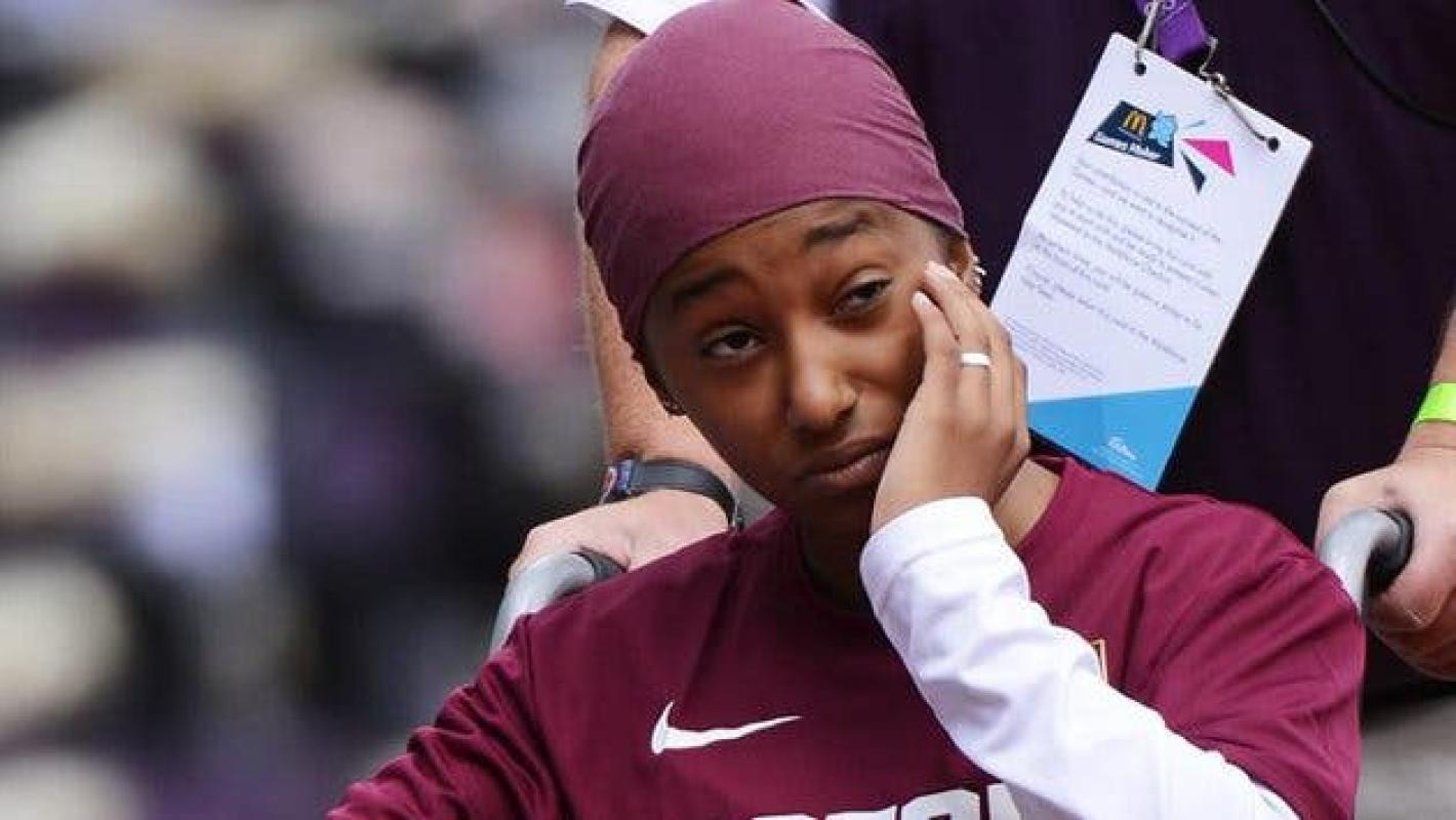 (Foto: EFE) Noor Hussain Al-Malki tuvo un triste debut en Londres 2012. Luego de avanzar unos 10 metros, sufrió una lesión que la obligó a abandonar la competencia de 100 metros planos.