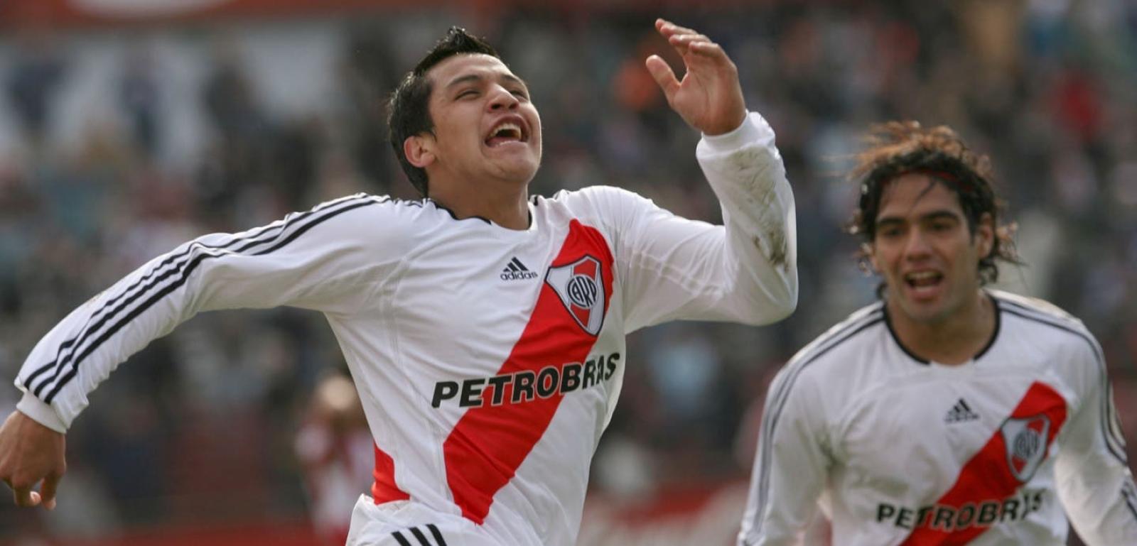 En ese primer paso por River Plate jugó siete compromisos y marcó dos goles. Eso sí, al año siguiente, en el Clausura 2008, tuvo una activa participación y terminó coronándose campeón junto al cuadro de la banda sangre.