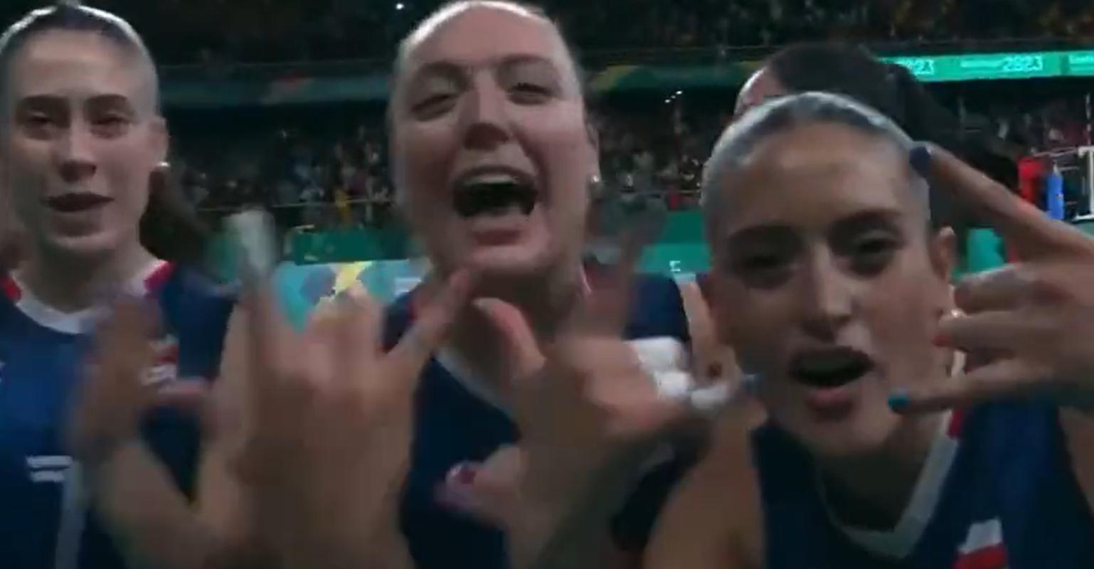 "Aguante el albo": Jugadoras de vóleibol celebraron triunfo en Santiago 2023 alentando a Colo Colo