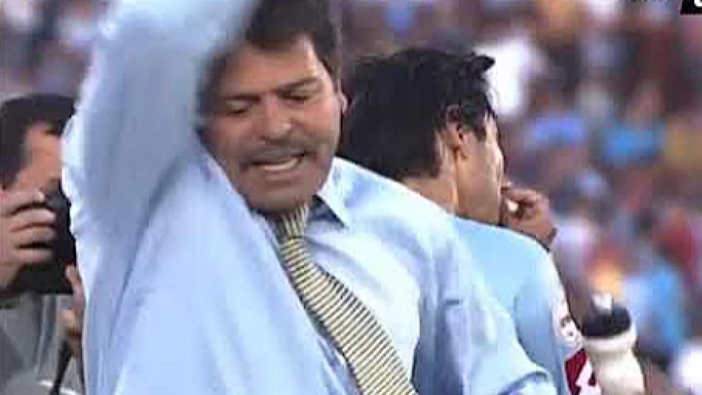 El actual comentarista estaba bajo los tres palos en el cuadro de colonia. Según cuenta la historia, todo se originó por un gol anulado al equipo de Rancagua por parte de Marco Olea, cuando ya expiraba el partido.