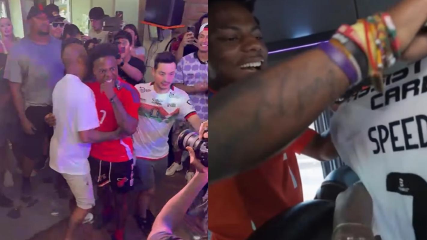 Arturo Vidal compartió con Speed y le regaló una camiseta de Colo Colo: "Un garrero neto"