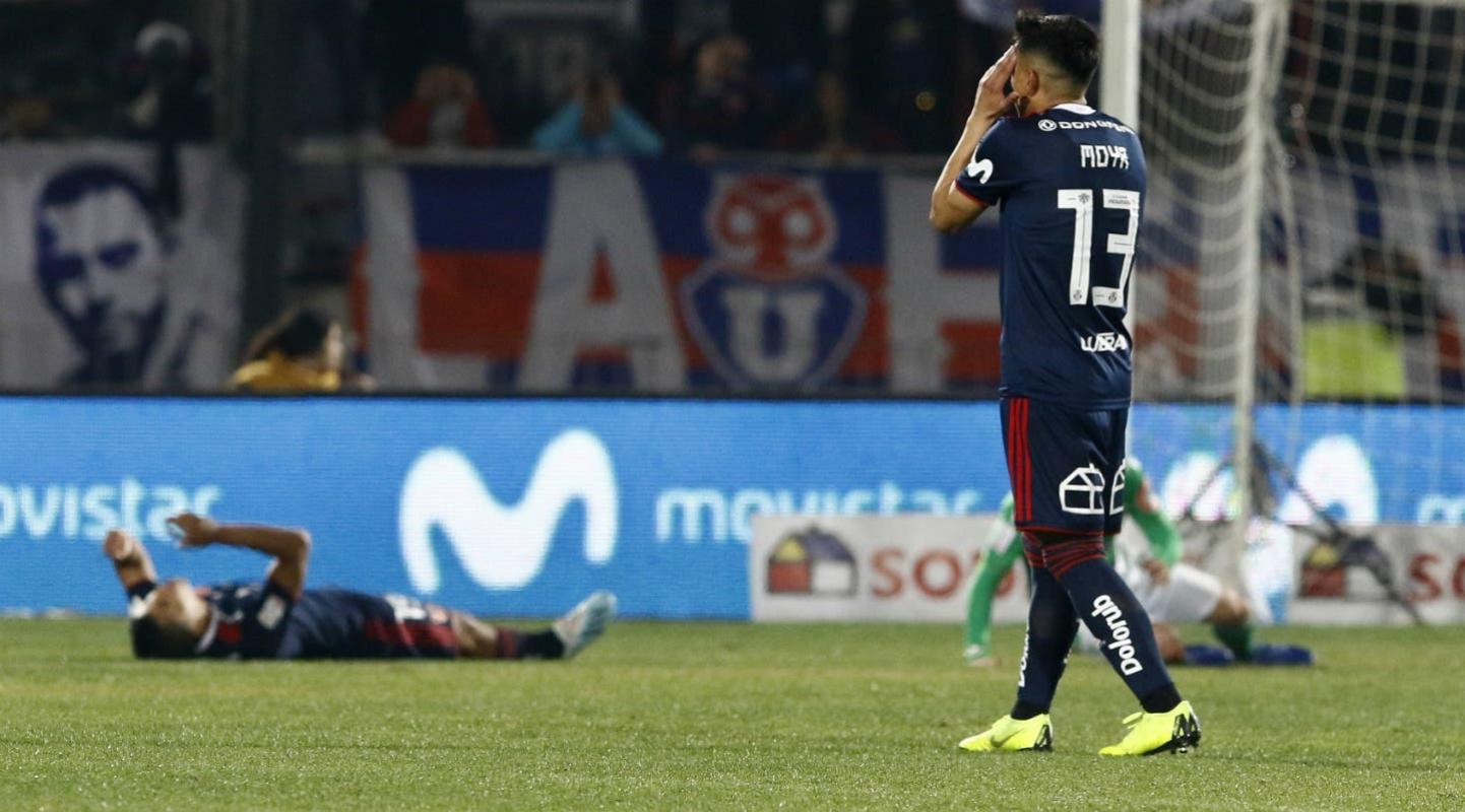 Casi al término de la primera etapa, a los 42 minutos de juego y cuando los azules lo ganaban por la cuenta mínima, Camilo Moya cometió una dura falta contra Marcos Bolados. El estudiantil sólo recibió amarilla, pero todos en el “Cacique” exigían la roja.