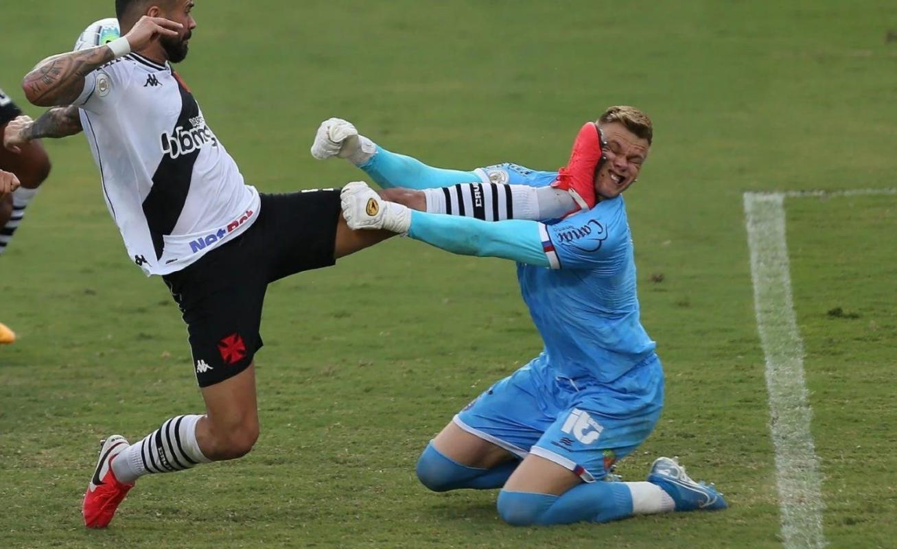 Así quedó la cara del portero del Bahía tras recibir impactante patada ante Vasco en el Brasileirao