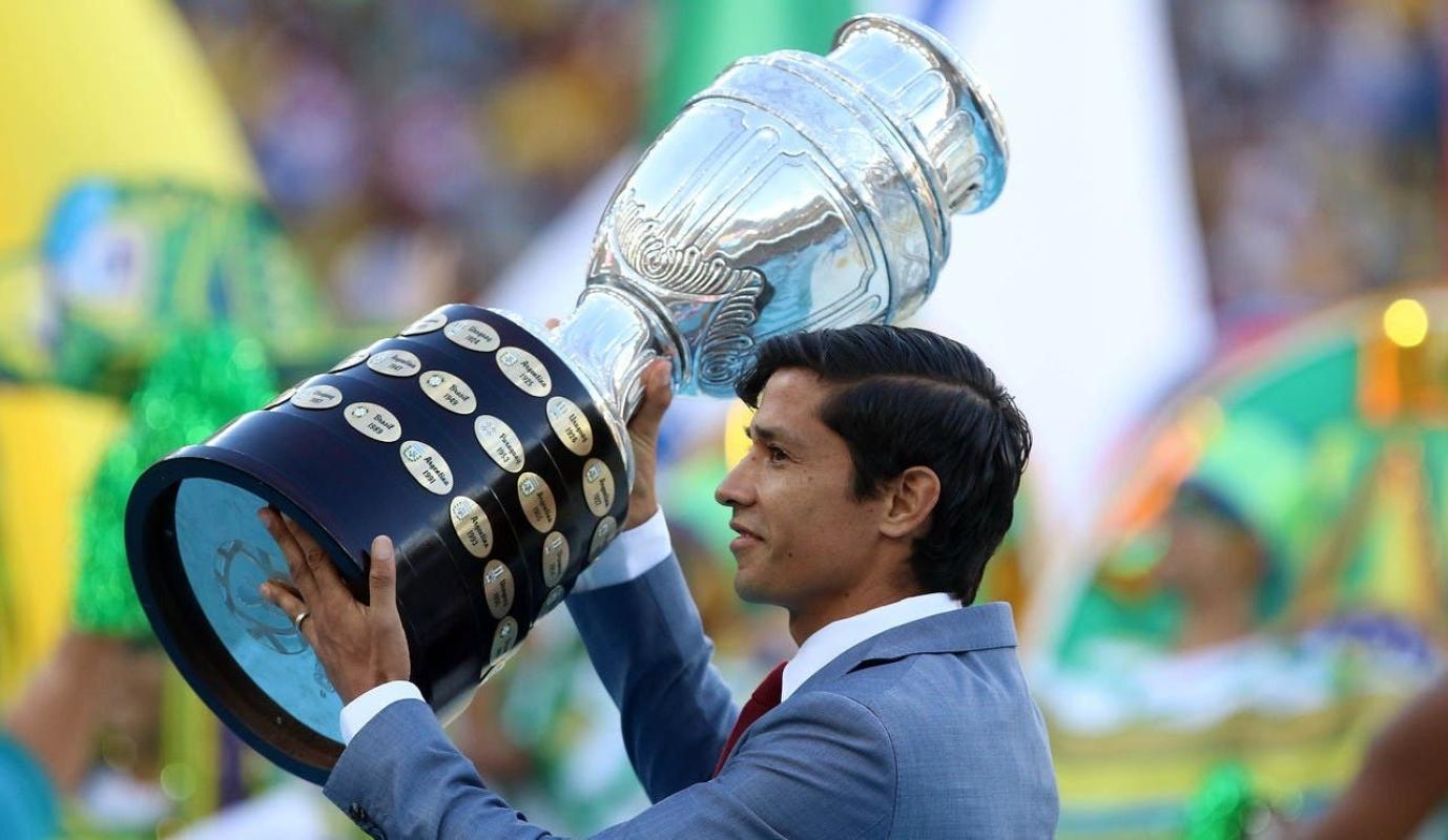 El futbolista chileno Matías Fernández fue el encargado de entregar el trofeo de la Copa América que la "Roja" consiguió en 2015.