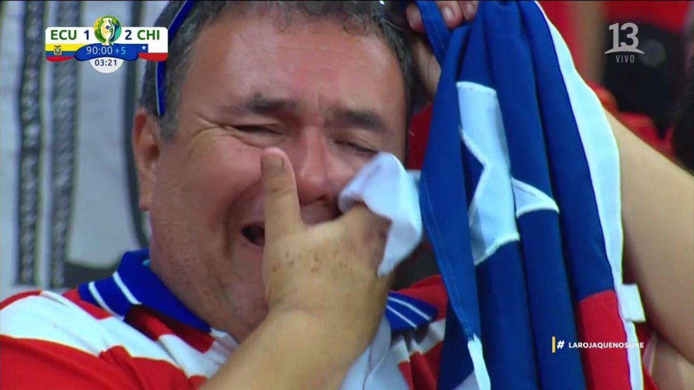 La victoria de Chile ante Ecuador por dos goles a uno en la segunda fecha de la Copa América Brasil 2019 emocionó a más de un hincha de la selección. El resultado le dio la clasificación a los dirigidos por Reinaldo Rueda a los cuartos de final del torneo y algunos de los fanáticos de la Roja presentes en el estadio no pudieron contener las lágrimas.