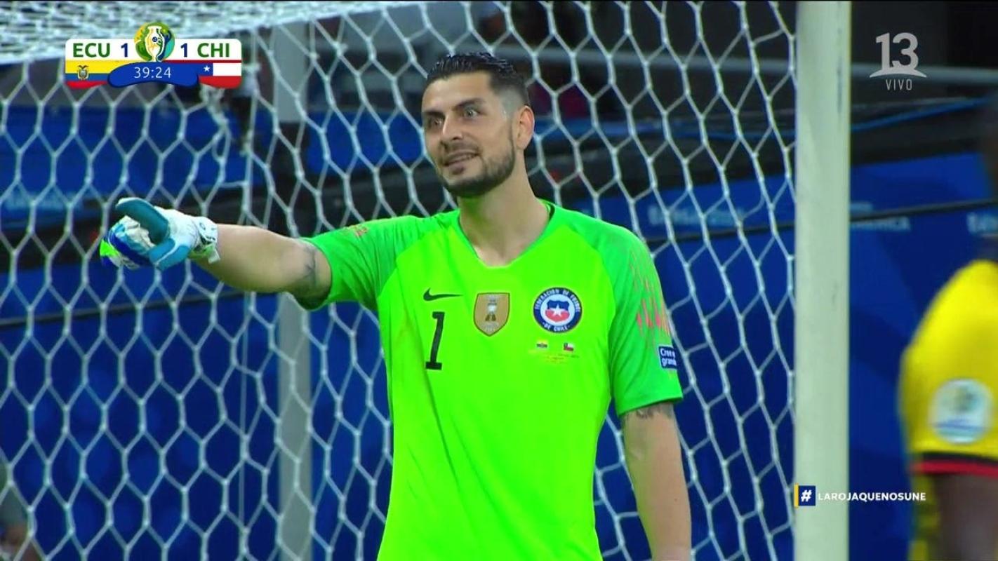 En una jugada que necesitó la revisión del VAR, el portero chileno se alejó del área y pasó a llevar a un delantero ecuatoriano.