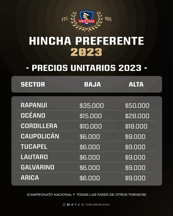 Este miércoles 7 de noviembre, las redes sociales de Colo Colo informaron los valores que tendrán las entradas y los abonos para los partidos de 2023.