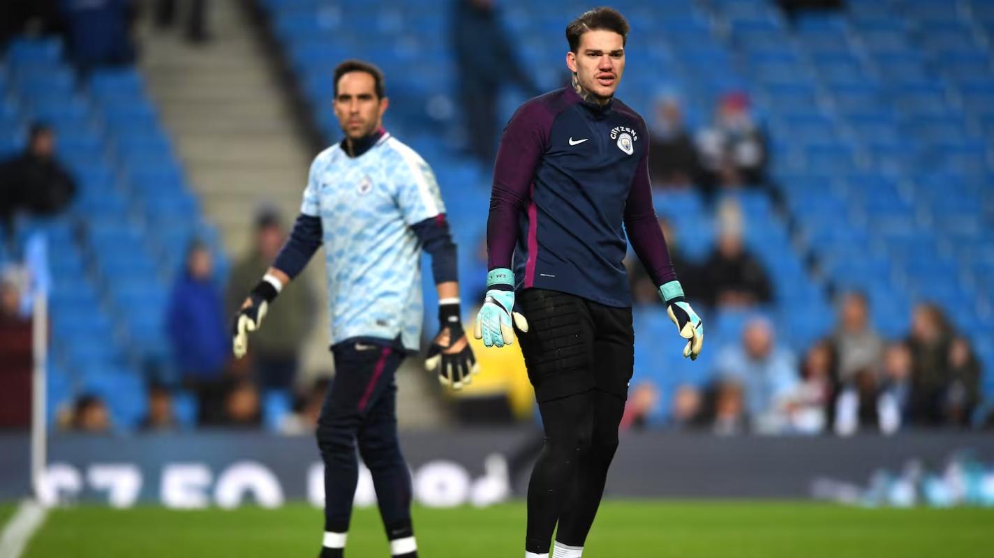 Claudio Bravo y Ederson. Crédito: Man City.