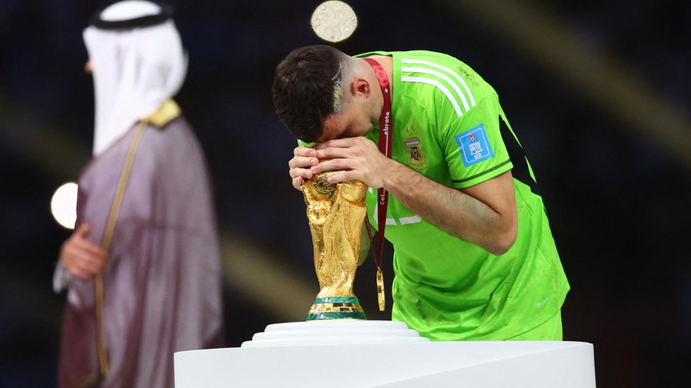 El "Dibu" terminó con premio doble en Catar 2022, levantó el trofeo planetario con Argentina y se alzó como el mejor portero de la Copa del Mundo recibiendo el guante de oro. Durante los siete partidos disputados, Martínez recibió 10 tantos y consiguió una balla invicta.