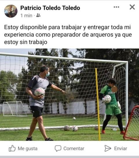 "Estoy disponible para trabajar y entregar toda mi experiencia como preparador de arqueros ya que estoy sin trabajo", pulbicó Patricio Toledo en su cuenta de Facebook.