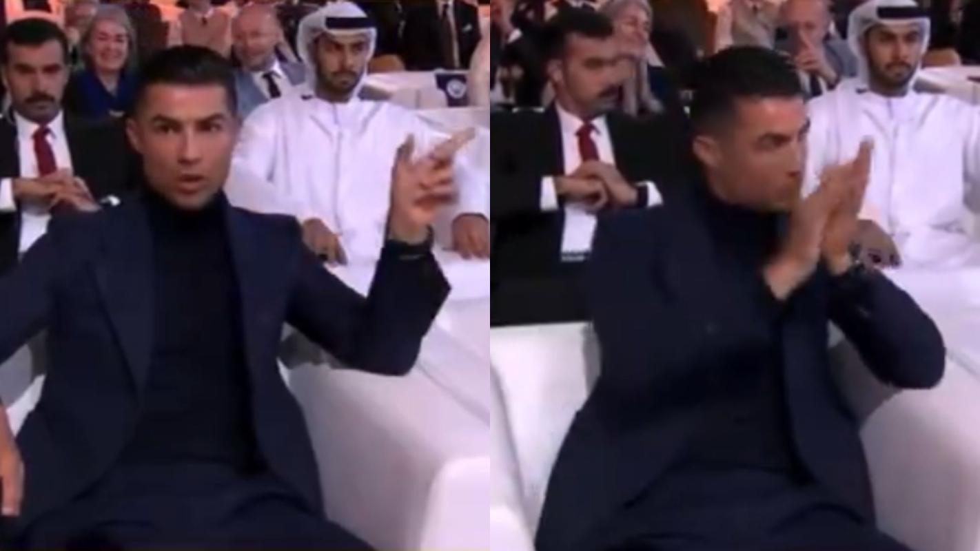 Cuando ambos jugadores estaban siendo enfocados, 'CR7' señaló en varias ocasiones con el dedo a Haaland, dando a entender que el premio era para él y no para sí mismo en esta ocasión.