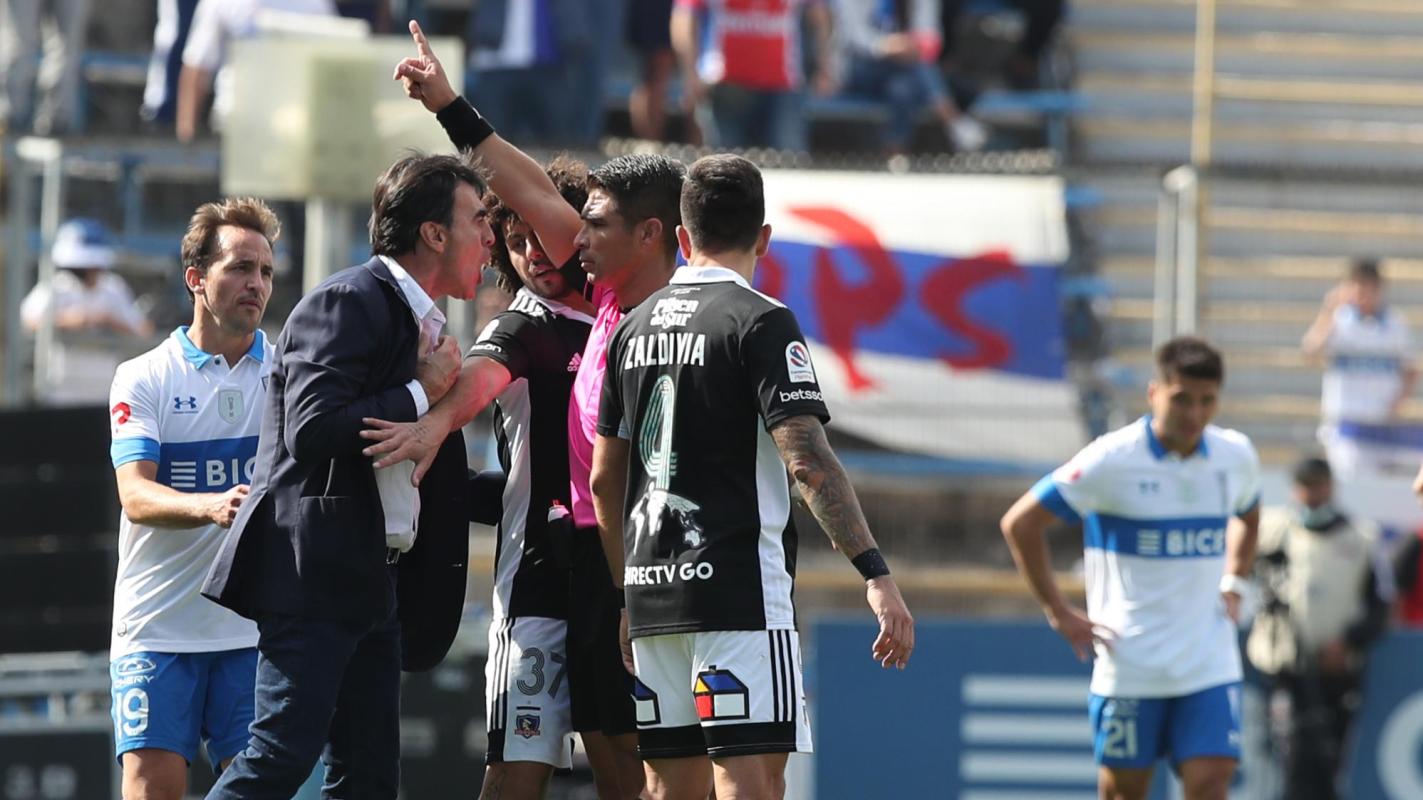 El hecho se salió de las manos cuando el estratega de Colo Colo, después de recibir la primera amarilla, seguía gritándole cosas como "sacá tarjeta viejo" al arbitro José Cabero, el que decidió mostrarle la cartulina roja y mandarlo a las duchas, el DT ya estaba dentro de la cancha con una actitud bastante violenta.