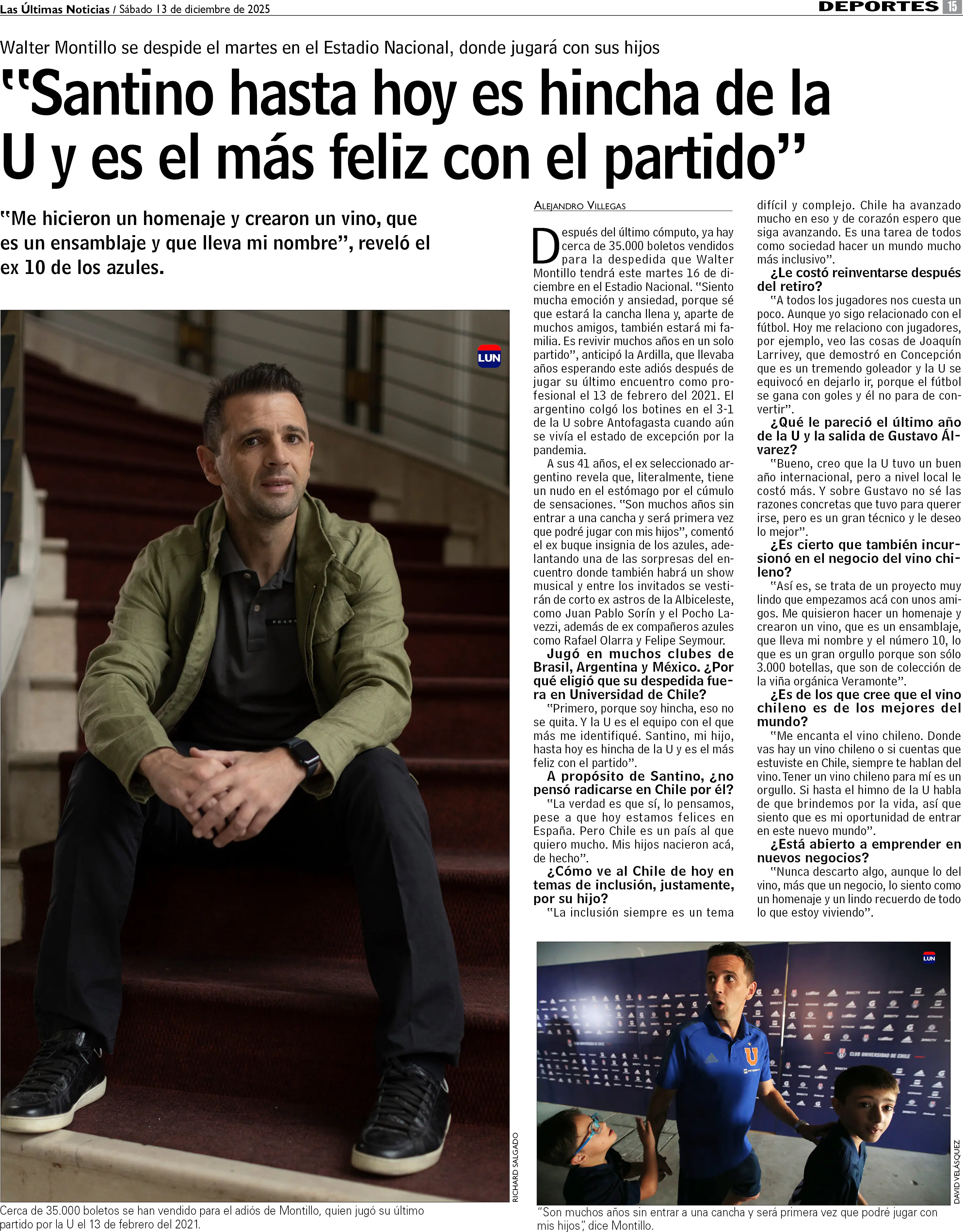 Walter Montillo incursiona en el negocio del vino chileno. Así lo confirmó en LUN.