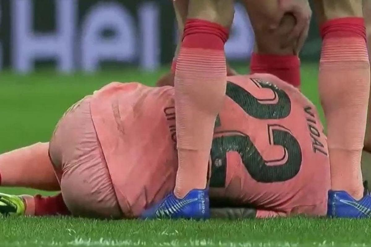 Al minuto 91, cuando el chileno hizo una barrida para evitar una posible jugada del Espanyol, Lenglet también trató de evitar una posible jugada rival, sin embargo, ambos jugadores terminaron disputando el balón, provocando el "pisotón" del francés sobre la pierna derecha del chileno.