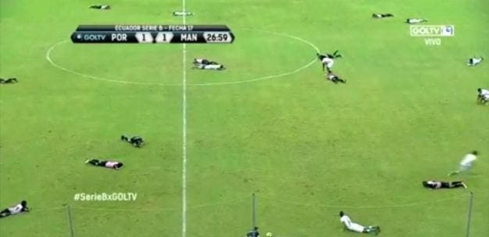Cuando el reloj del partido marcó el minuto 27, árbitros y jugadores se lanzaron al suelo ante la atónita reacción del comentarista por una invasión de abejas, alertados por la banca del Manta FC.