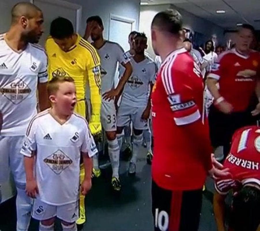 Un niño se encontraba en el túnel para acompañar a los jugadores durante el ingreso a la cancha, cuando descubrió que a su lado tenía a Wayne Rooney.