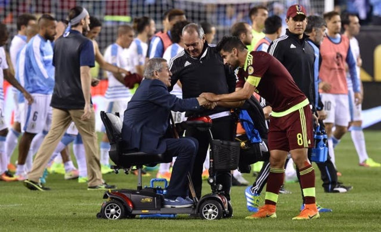 La imagen del técnico charrúa en un carro electrónico dio la vuelta al mundo. El "Maestro" cambió el bastón por dicho aparato para poder trasladarse y con ello las dudas comenzaron a surgir rápidamente. Sin embargo, el total hermetismo desde el cuerpo técnico uruguayo no permitió conocer el real estado de salud del DT durante el torneo.