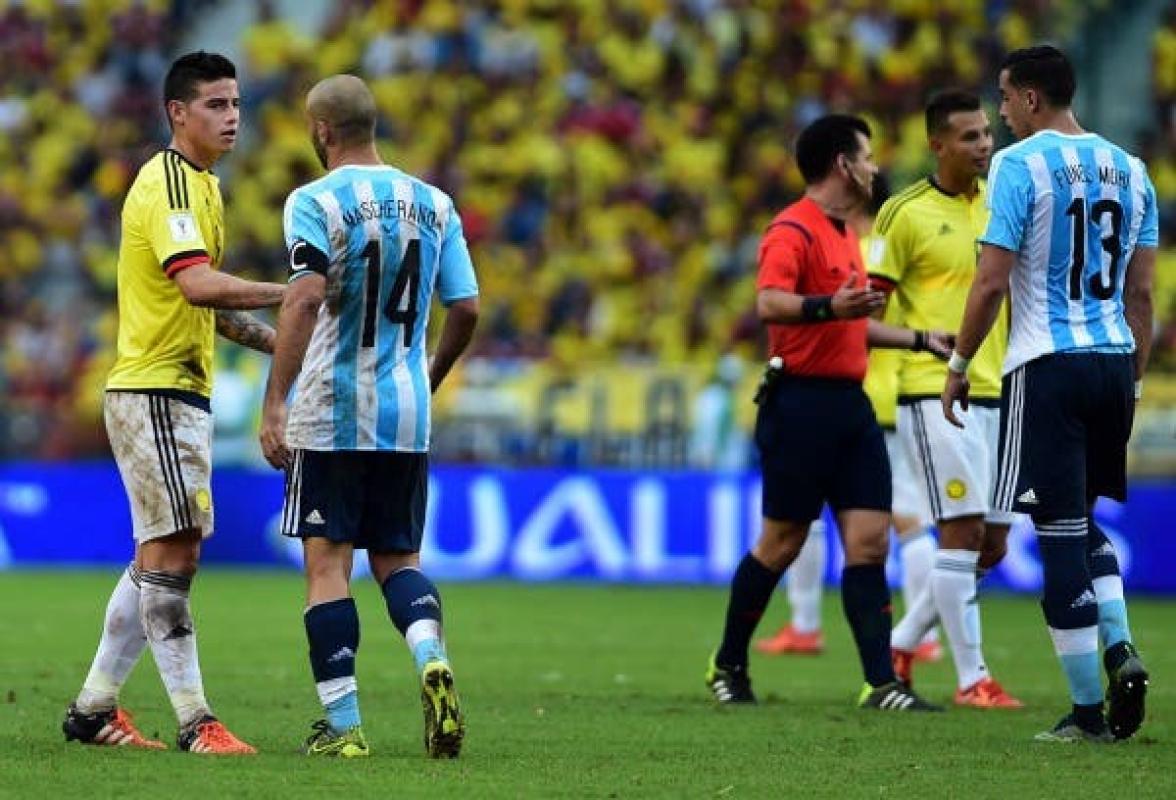 El volante transandino fue amonestado por falta sobre el mediocampista colombiano James Rodríguez. El hombre del Barcelona fue el encargado de marcar durante todo el partido al 10 cafetalero y lo tuvo neutralizado durante todo el partido, pero en el minuto 63, el talentoso hombre del Real Madrid logró romper la marca de Mascherano quien no tuvo más opción que bajarlo.