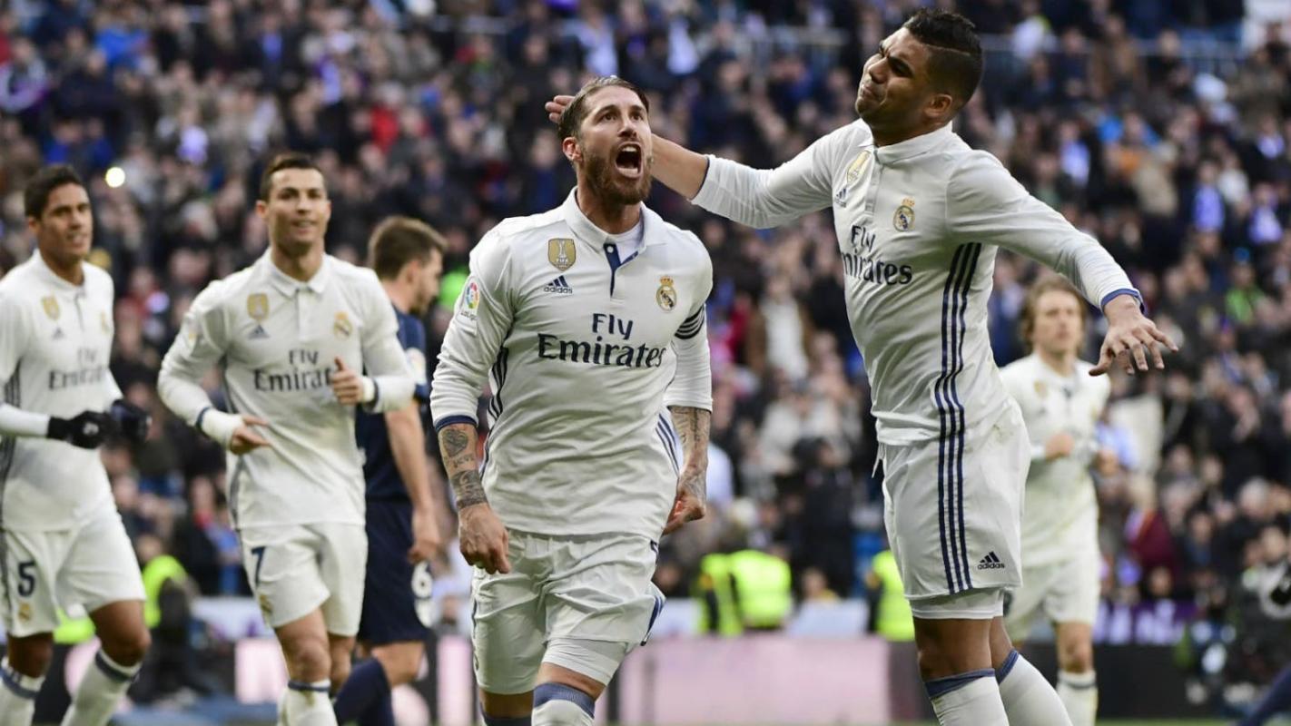 El Real Madrid venció 2-1 en el Estadio Santiago Bernabéu al Málaga con un doblete de su capitán Sergio Ramos, este sábado en la 19° jornada de la liga española, por lo que finalizó la primera vuelta como líder logrando el título honorífico de "campeón de invierno".