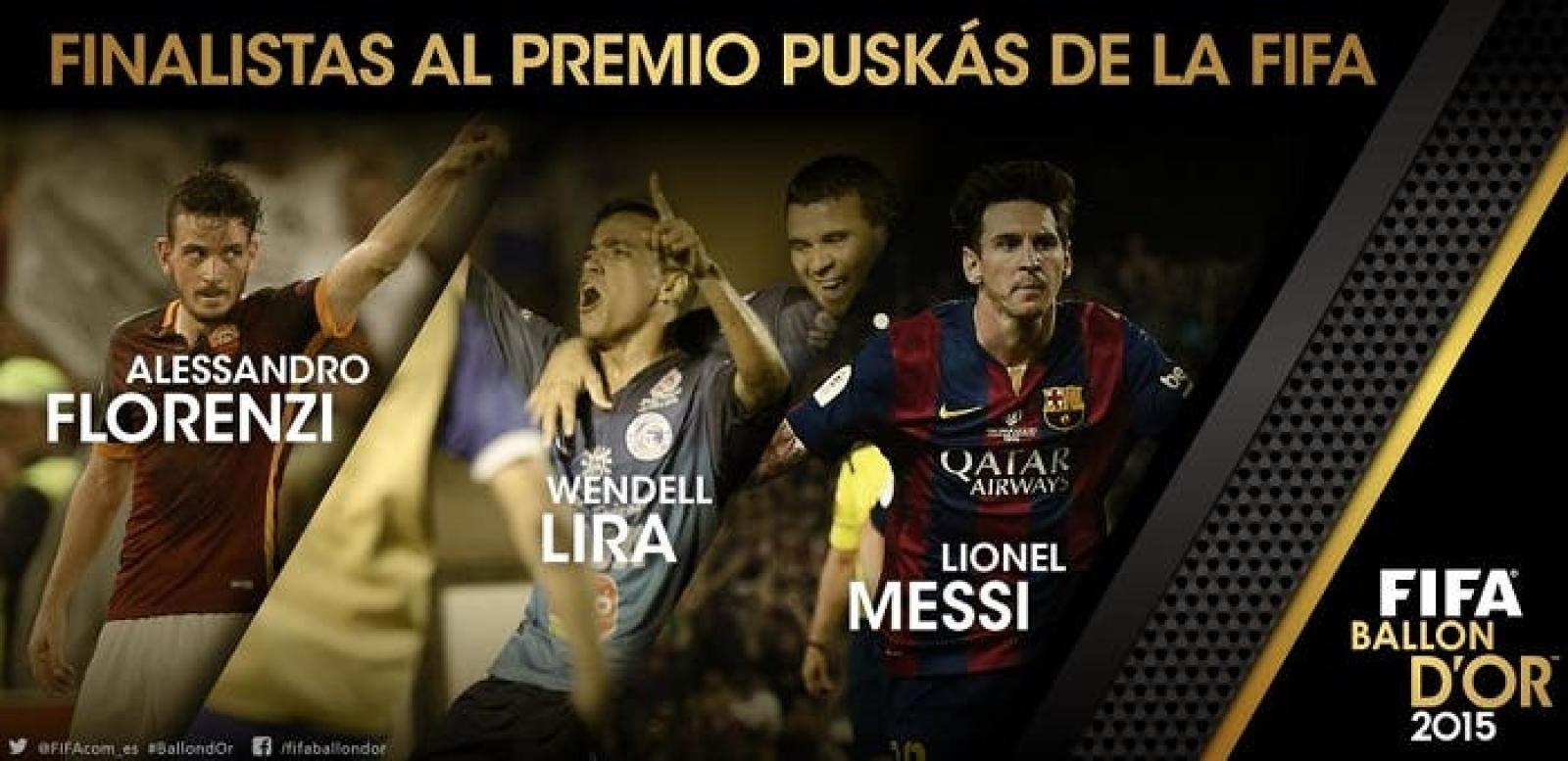 Y los candidatos son las anotaciones del argentino Lionel Messi (Barcelona), el italiano Alessandro Florenzi (Roma) y el brasileño Wendel Lira (Goias).