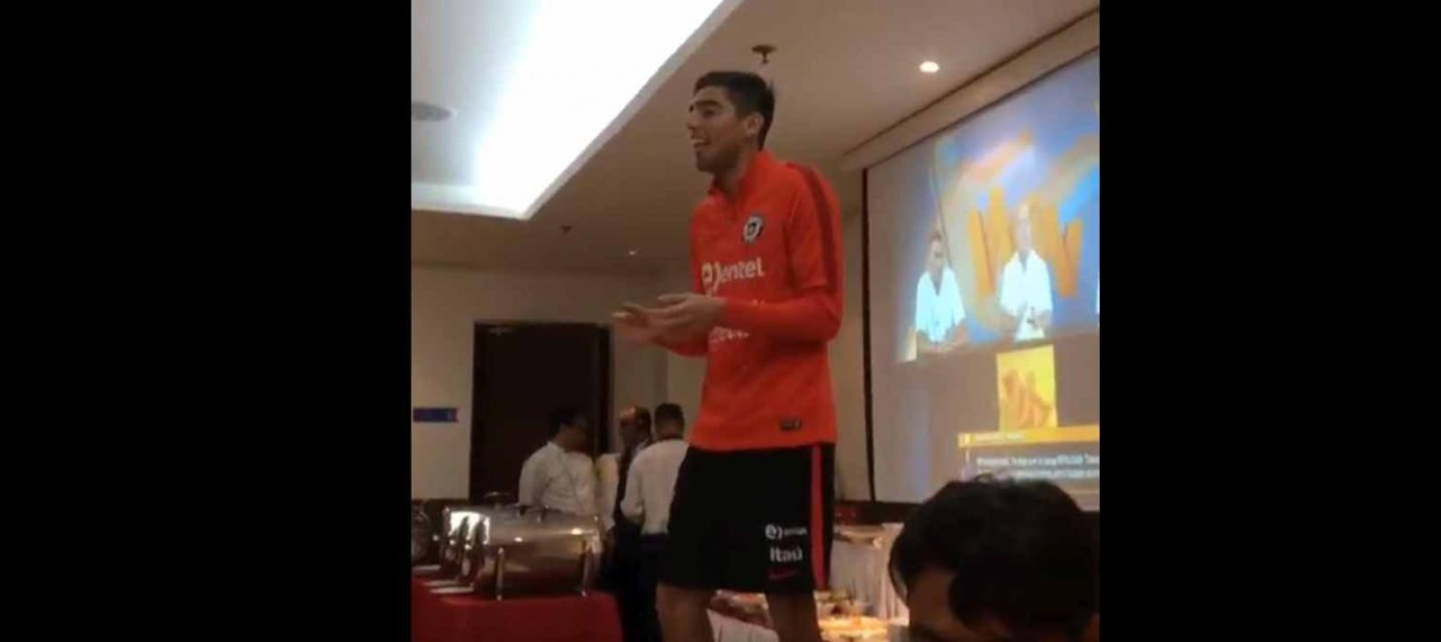 [VIDEO] Gabriel Castellón cumple con la tradición y canta para sus compañeros de "La Roja"