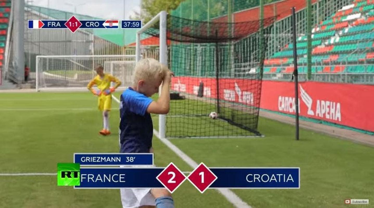 El medio ruso RT, fue el responsable de realizar la representación de lo que fue el partido definitorio del campeonato más importante de selecciones entre los galos y los balcánicos. Con esta idea fue que juntaron a dos equipos de pequeños que imitaron de gran manera goles y celebraciones del encuentro.
