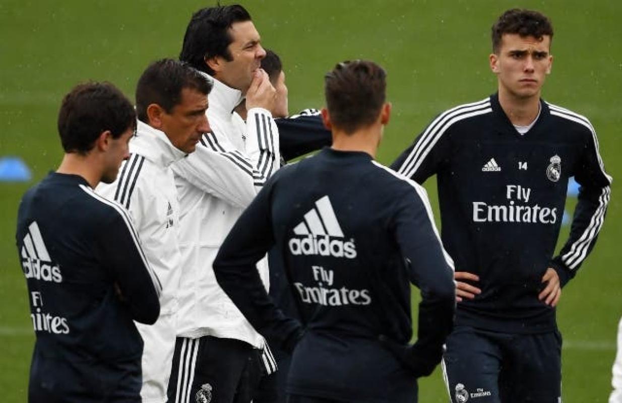 Bajo la lluvia y en un ambiente más bien distendido, los jugadores madridistas realizaron varios ejercicios bajo el ojo atento de Solari, técnico del filial que ha ascendido provisionalmente tras la dura derrota 5-1 contra el Barcelona el domingo, que supuso la sentencia para Lopetegui.