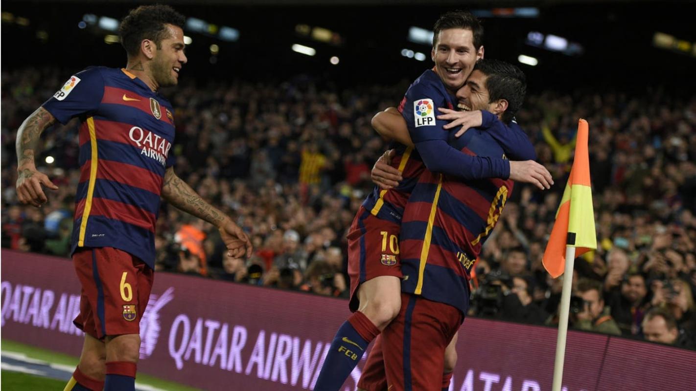 Con sus tres tantos, Suárez alcanzó la cifra de 23, superando al portugués Cristiano Ronaldo (21) como líder de la tabla de goleadores, después de que el portugués lograra un doblete el sábado en la victoria del Real Madrid contra el Athlétic Bilbao.