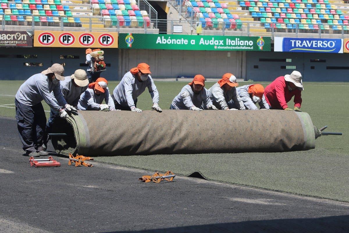 Durante la jornada de este lunes recién pasado comenzaron los trabajos para cambiar la carpeta sintética del estadio Bicentenario de La Florida, los que deberían finalizar el próximo 30 de marzo para la séptima fecha del Campeonato Nacional, donde Audax Italiano recibirá a Universidad de Chile.