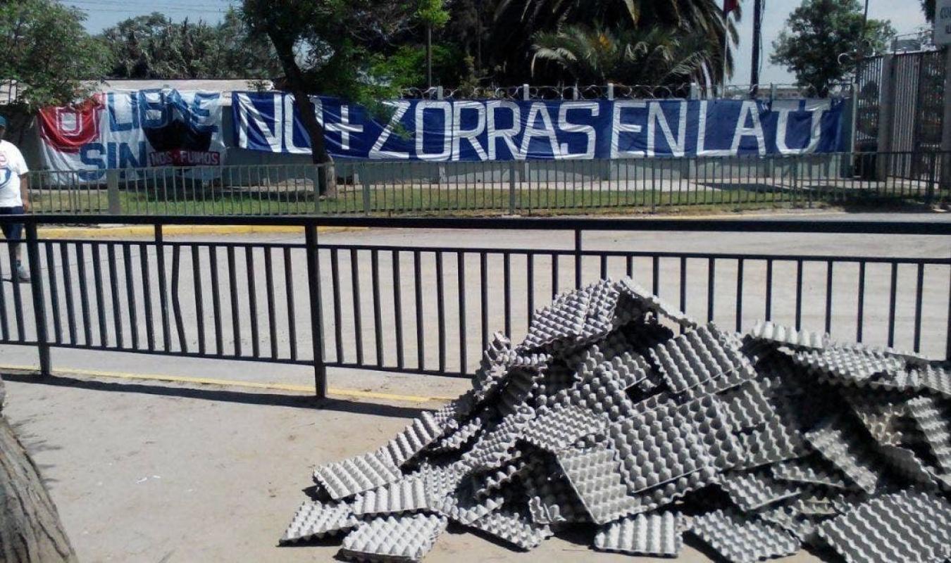 Para ello los barristas colgaron un lienzo con el mensaje "no + zorras en la U (SIC)" y otro que dicen "jueguen como hinchas y no como empleados".