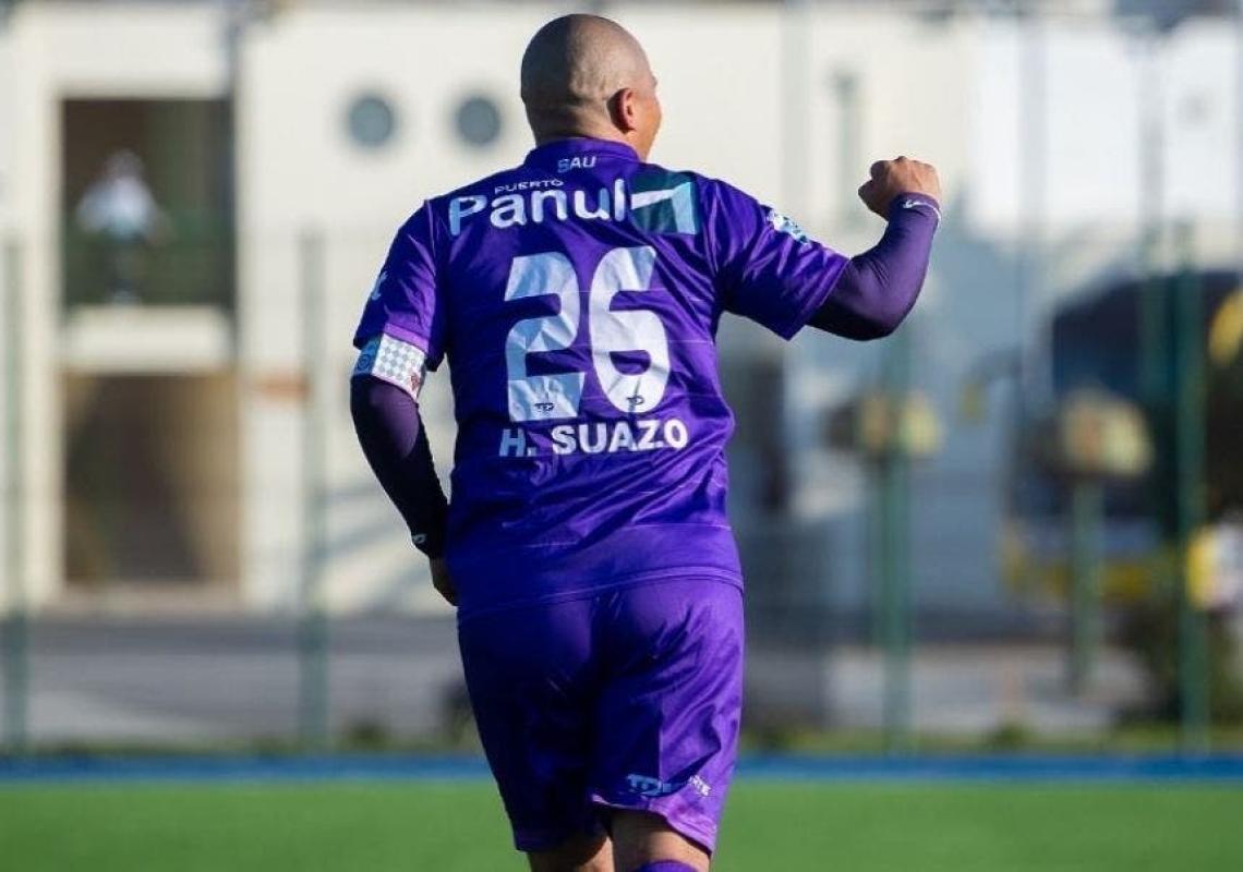 "Directamente traído del planeta gol, Humberto Suazo uno de los jugadores históricos Chilenos se une durante la temporada 2020 a la escuadra Santacruzana para vestir nuestra armadura", dice la breve reseña con una imagen que ya imagina a "Chupete" con la camiseta de Deportes Santa Cruz.