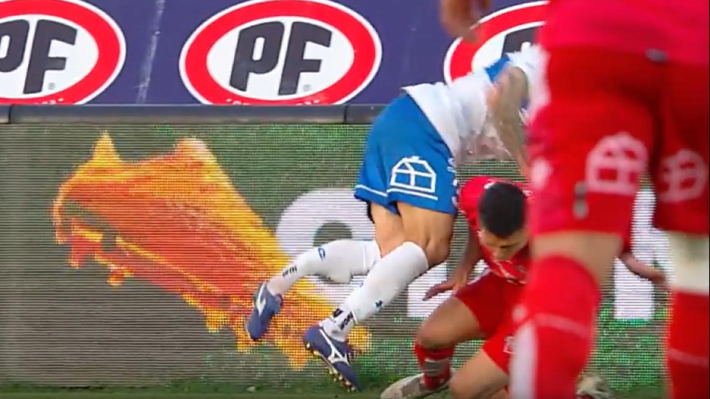 El seleccionado nacional tuvo que ser retirado del estadio Santa Laura en ambulancia por esta jugada. Situación que consternó a los fanáticos 'Cruzados' presentes en el recinto deportivo ubicado en la Región Metropolitana.