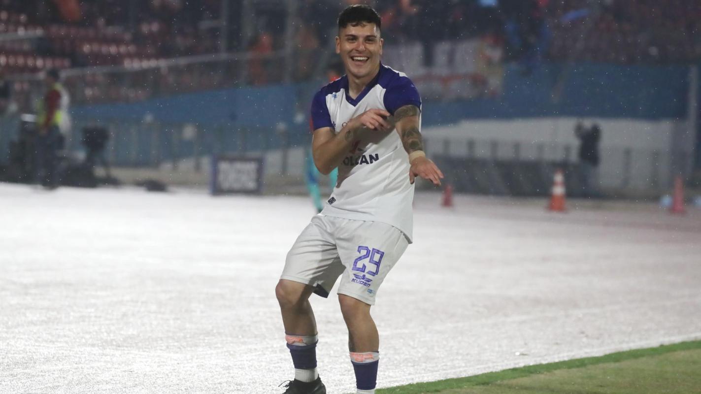 Matías Bravo celebrando a lo Leandro Fernández. Crédito: Photosport.