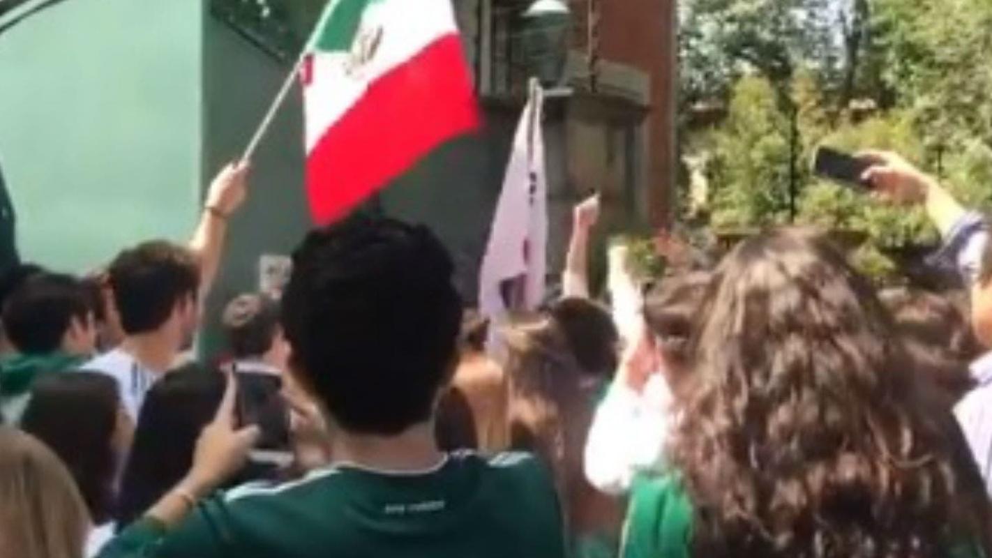 [VIDEO] Hinchas mexicanos se agolparon en masa en la embajada de Corea