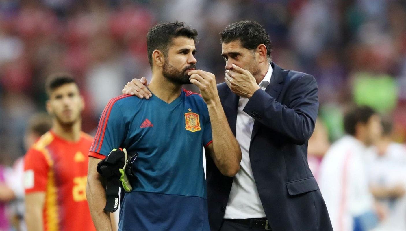 Una vez finalizada la tanda de penales que dejó fuera a "La Roja" de la Copa del Mundo, Diego Costa y Fernando Hierro mantuvieron una larga conversación mientras saludaban y consolaban al resto de sus compañeros.