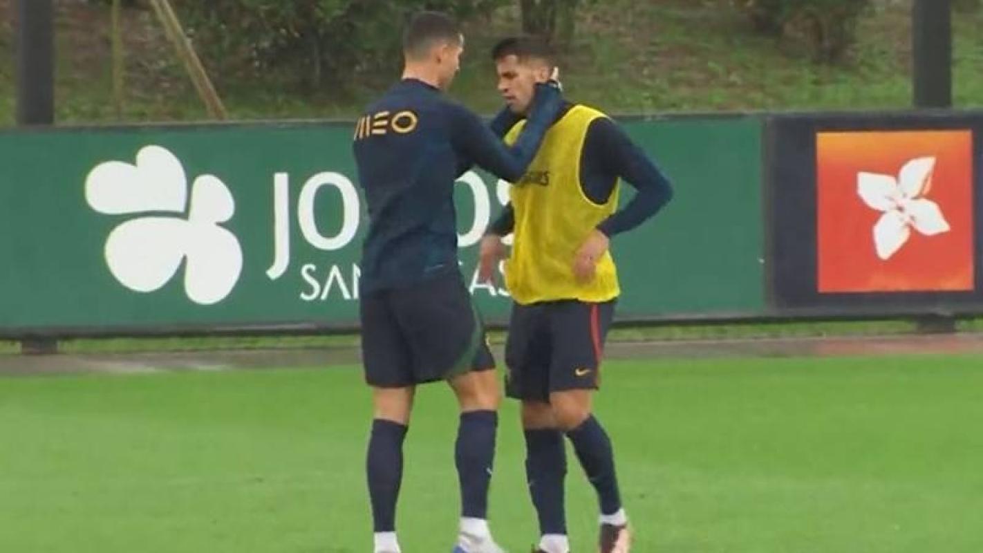 Ahora, la selección portuguesa se encontraba realizando una de sus prácticas, cuando el 'bicho' se acercó a Joao Cancelo y lo toma de la cabeza mientras le dice unas palabras. Sin embargo, el lateral del Manchester City le hace el quite y se aleja con cara de fastidio.