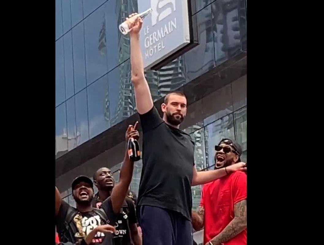 El basquetbolista español y reciente campeón de la NBA Marc Gasol sorprendió a todos los hinchas de los Toronto Raptors en medio de los festejos del título de campeón. El catalán paseaba junto al resto del equipo por la ciudad mostrando el título conseguido el jueves, cuando bebió una botella de champán de una vez, ante los gritos de los hinchas.
